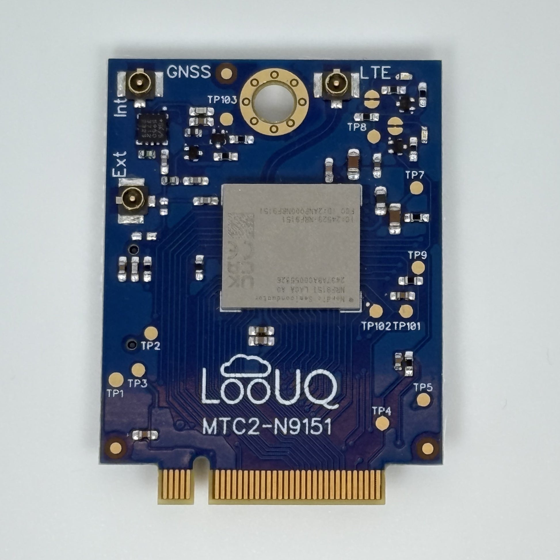 Our flagship modem, the MTC2-N9151 is based on the Nordic nRF9151 SIP. The MTC2-N9151 ushers in a new paradigm for LooUQ with a truly “smart” modem. Offering a range of possibilities. The MTC2-N9151 has both LTE and GNSS functionality, including support for the new NTN (non-terrestrial networking aka: satellite) firmware with select providers.